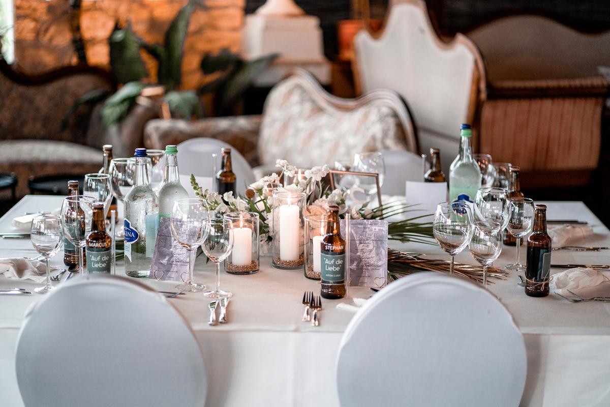 Auch im Schlosshof sorgt moderne Ambient- und Partybeleuchtung für die passende Atmosphäre – ob zur Trauung, zum Dinner oder zur Party danach. Gestuhlt bietet der Raum Platz für bis zu 80 Gäste.